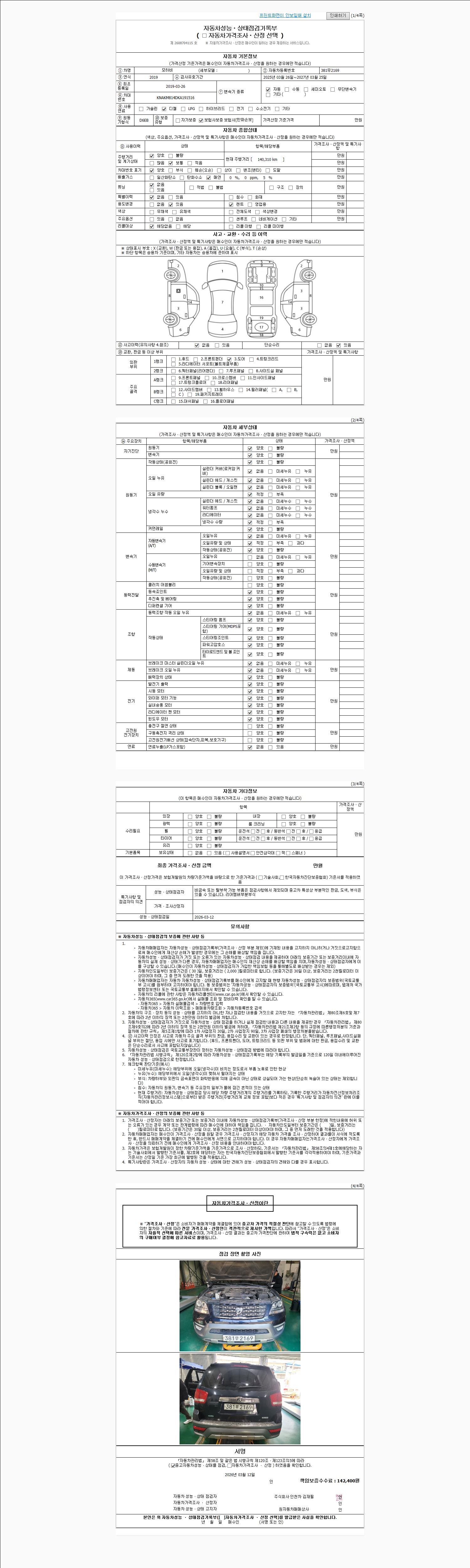| 사고유무 | 성능기록부 참조 | 제시번호 | 제 2026012946 호 |