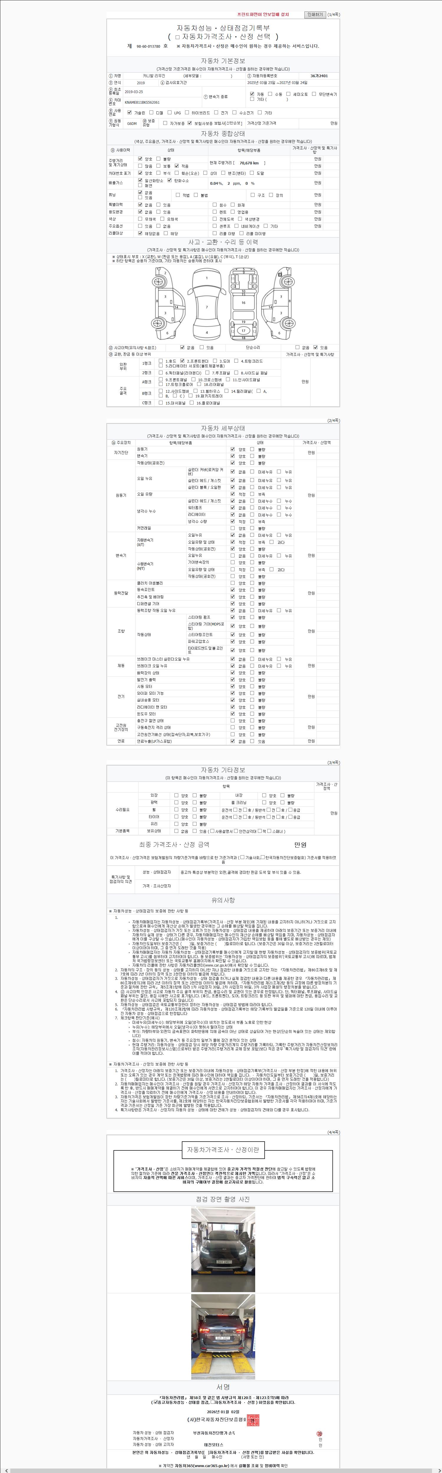 2. 차량 등록증이나 성능점검지 등을 상담자에게 요청및 확인하시고 사전에 미리 점검 하시기를 권유드립니다.