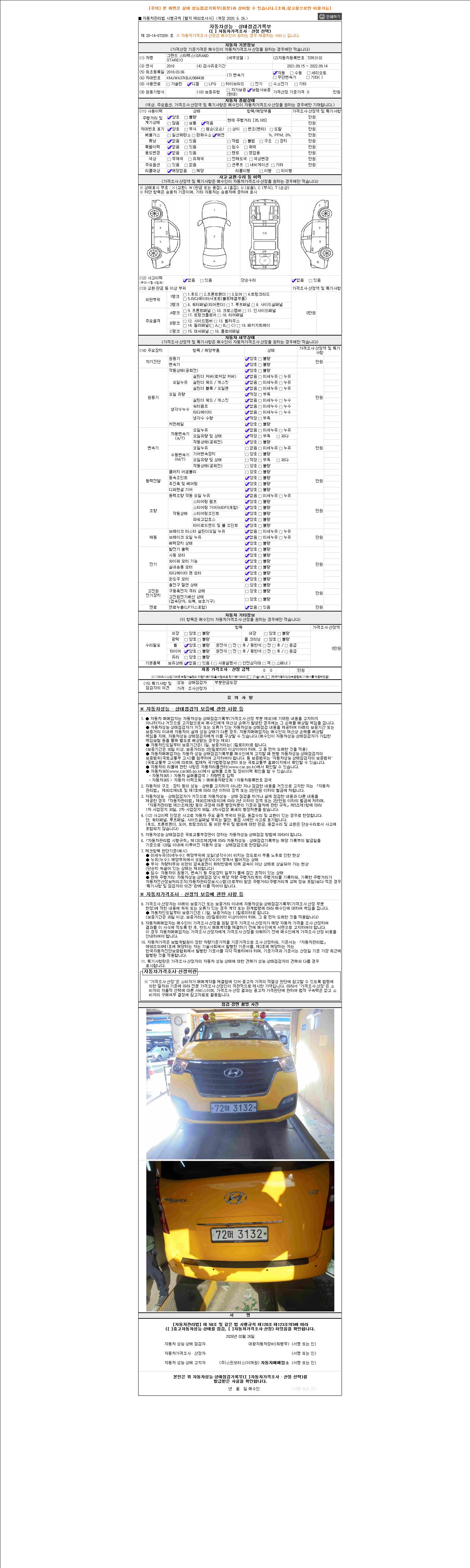 2. 차량 등록증이나 성능점검지 등을 상담자에게 요청및 확인하시고 사전에 미리 점검 하시기를 권유드립니다.
