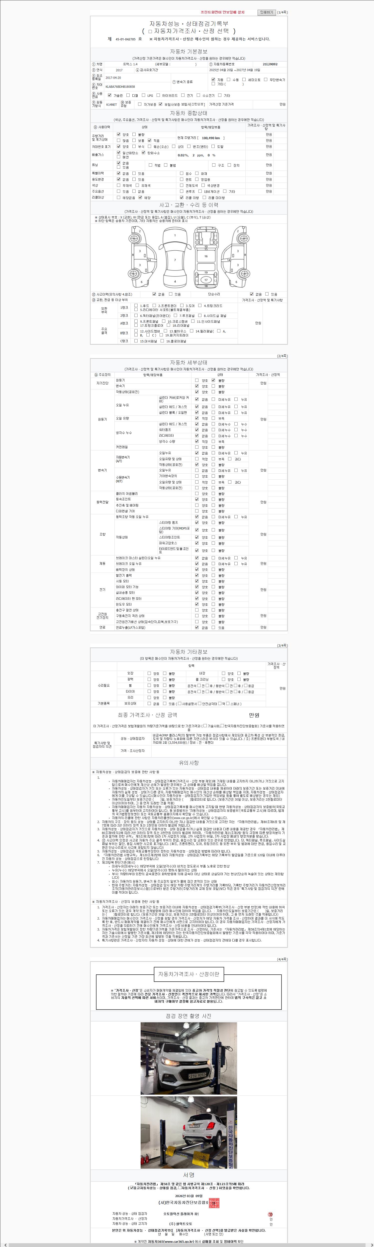 오토|휘발유|2017년 4월|100,490 km 21나9092| cc|흰색|무사고 |