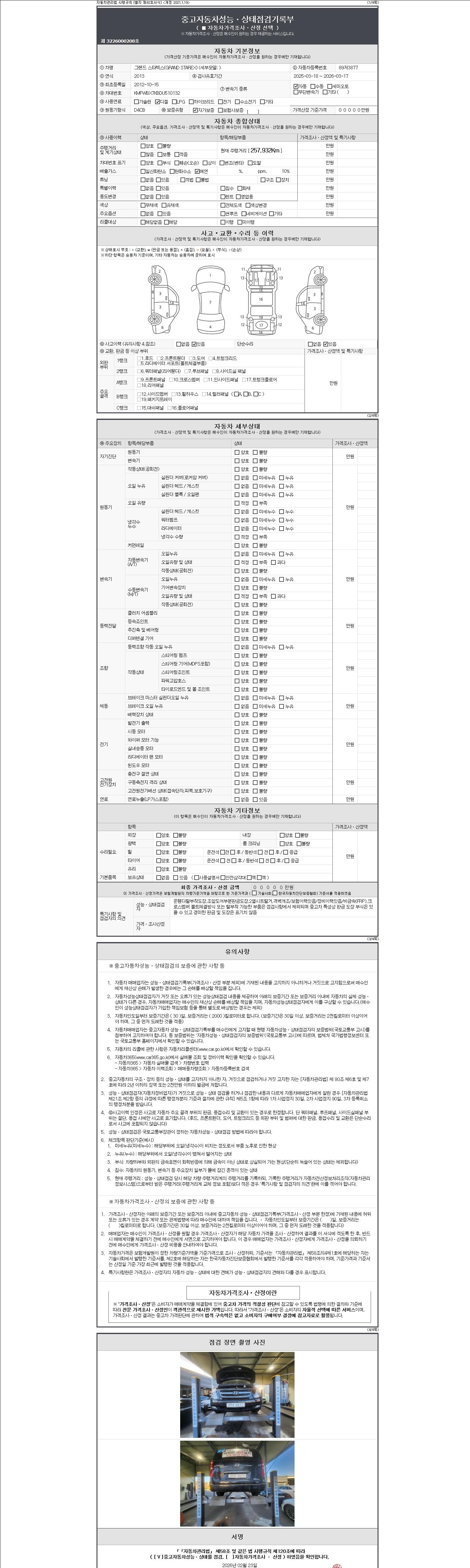 2. 차량 등록증이나 성능점검지 등을 상담자에게 요청및 확인하시고 사전에 미리 점검 하시기를 권유드립니다.