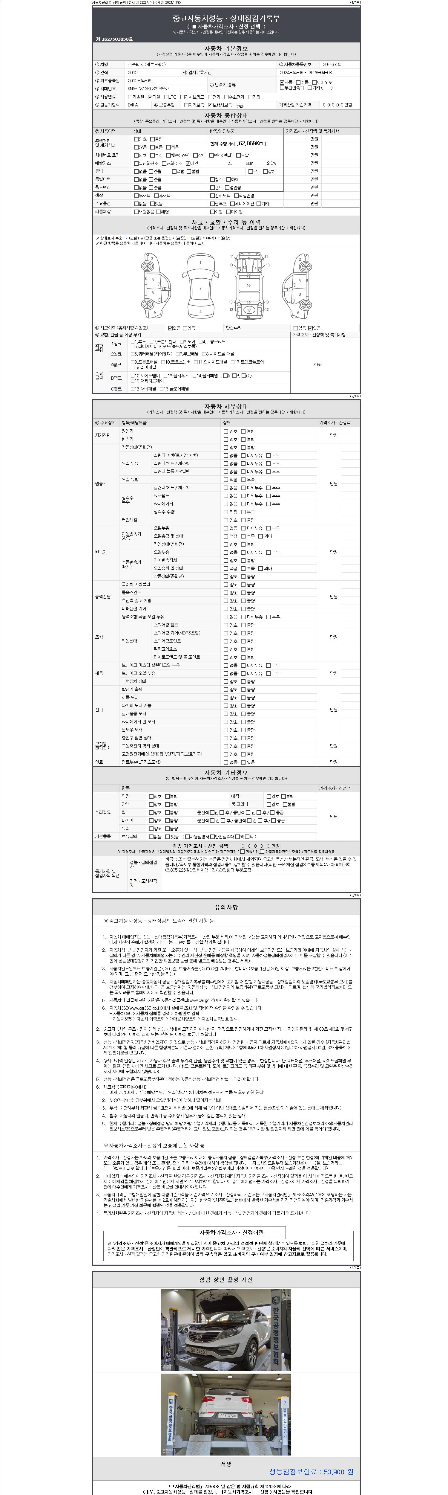 -중고자동차 매매업자를 통해 차량을 구입하실 경우 반드시 "중고자동차 성능, 상태점검 기록부"를 교뷰 받으셔야 하며, 매매업자는 반드시 의무 교부 하여야 압니다.