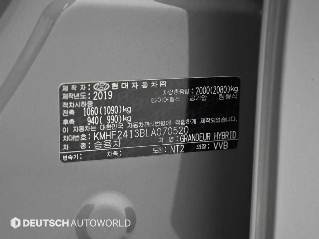 현대 그랜저 더 뉴 그랜저 IG 하이브리드 (19년~) 익스클루시브 |