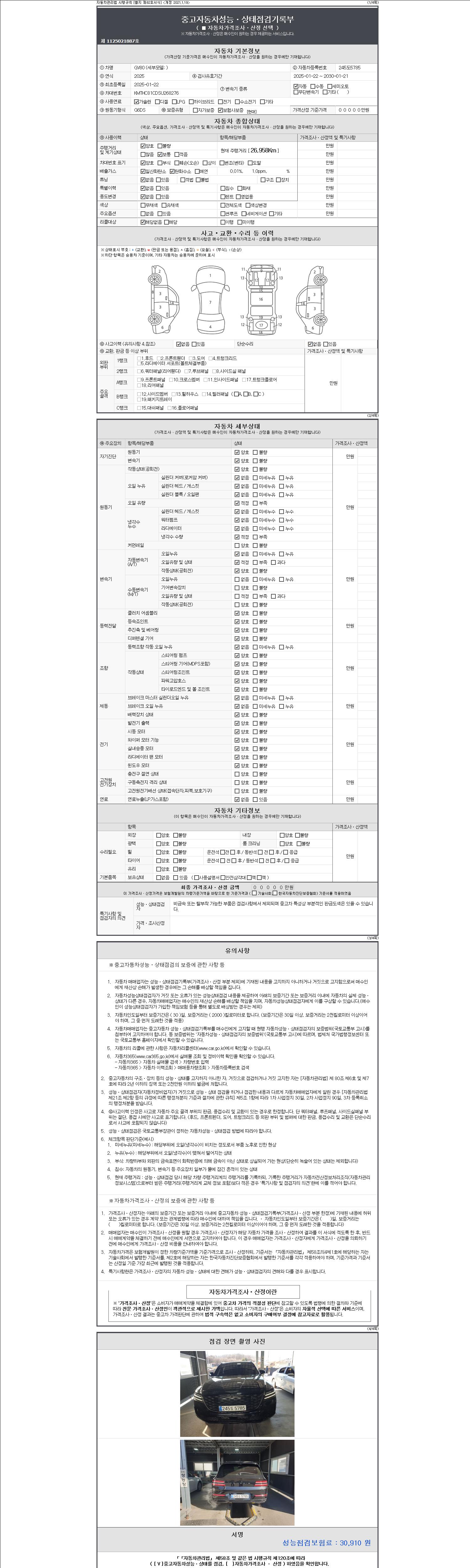 | 주행거리 | 26,958 km | 차량번호 | 245도5785 |