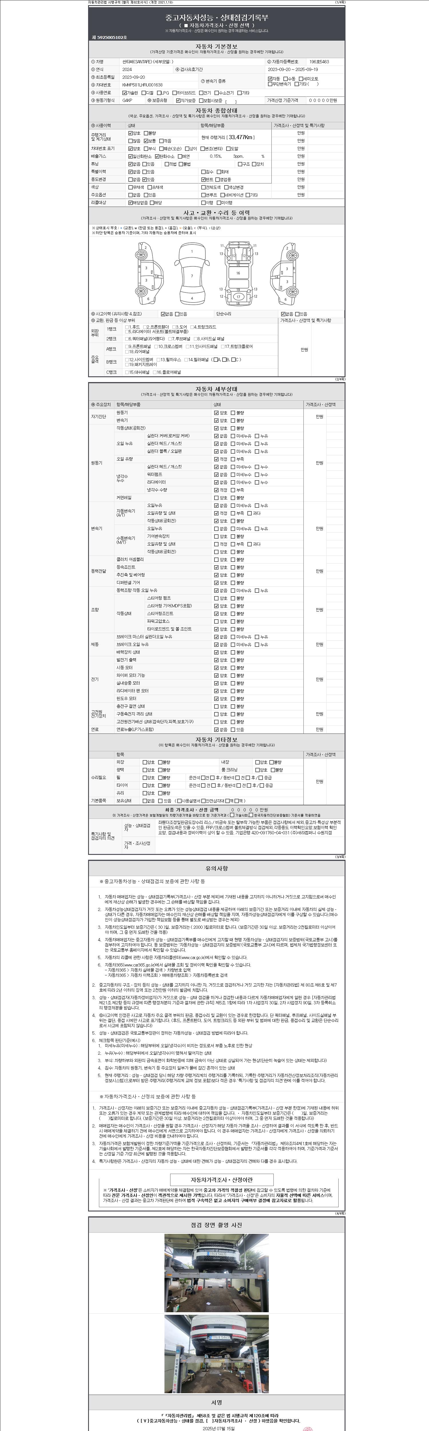 2. 차량 등록증이나 성능점검지 등을 상담자에게 요청및 확인하시고 사전에 미리 점검 하시기를 권유드립니다.