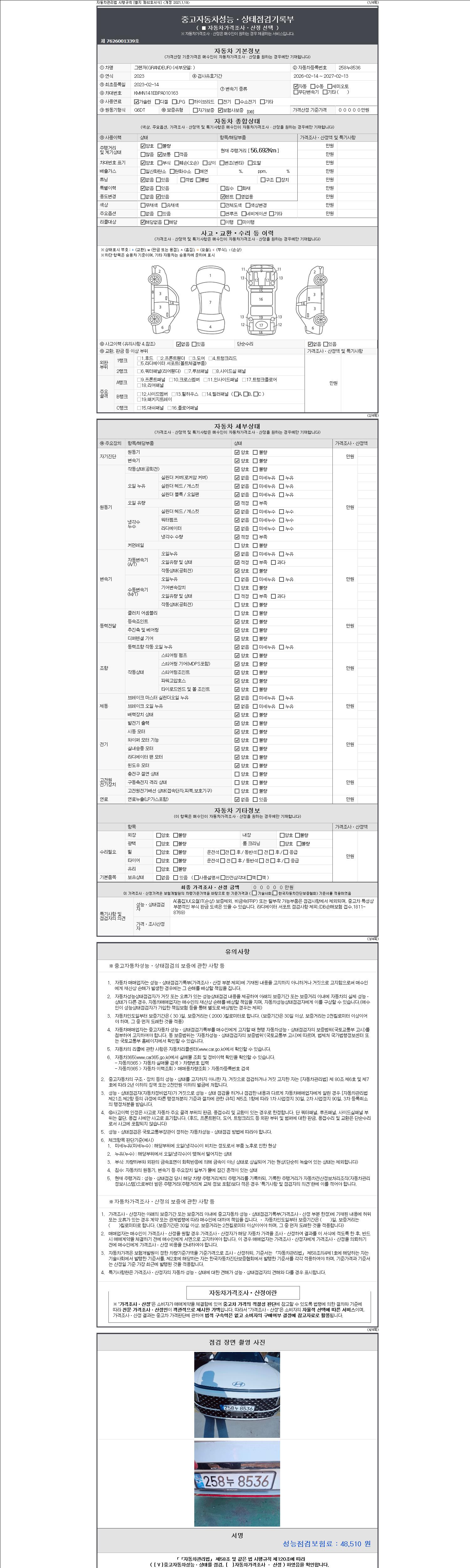 2. 차량 등록증이나 성능점검지 등을 상담자에게 요청및 확인하시고 사전에 미리 점검 하시기를 권유드립니다.