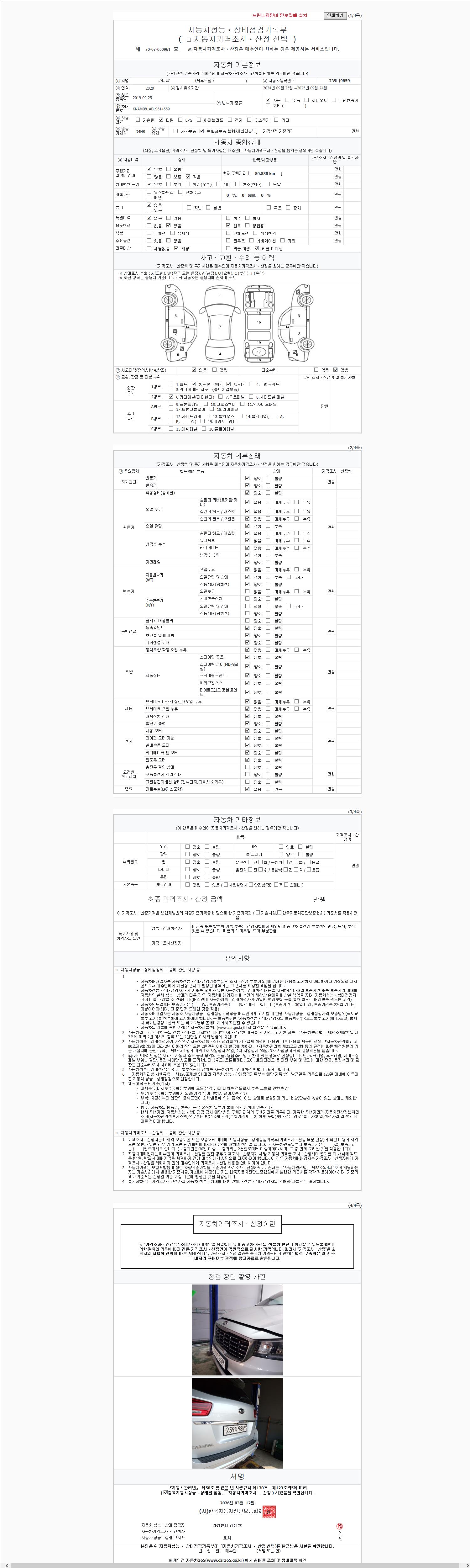 2. 차량 등록증이나 성능점검지 등을 상담자에게 요청및 확인하시고 사전에 미리 점검 하시기를 권유드립니다.