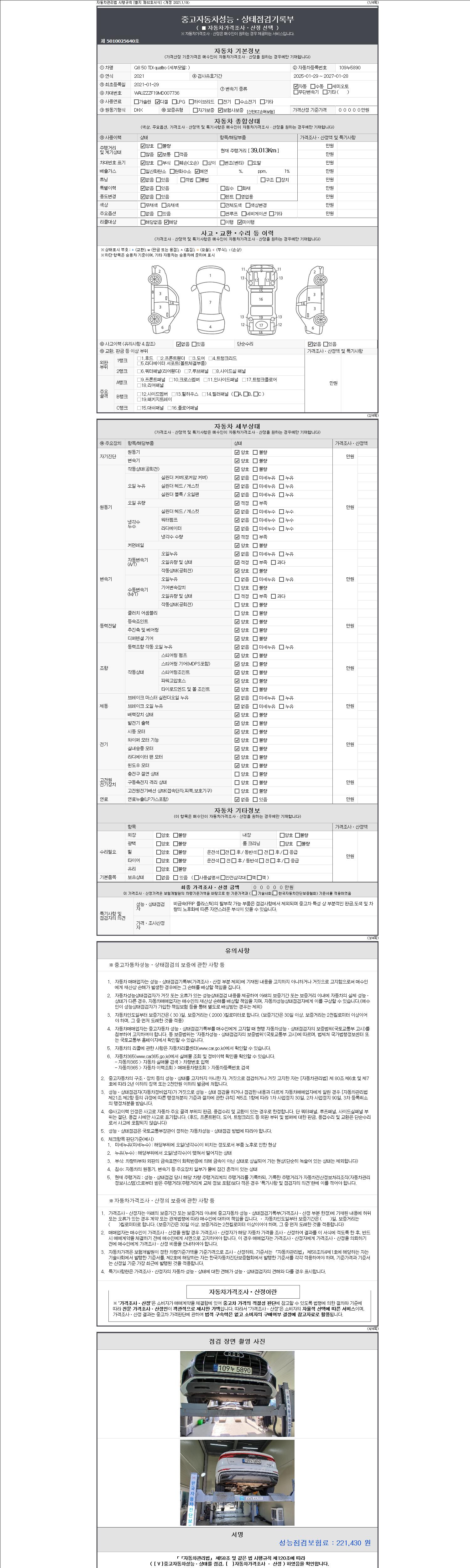 | 주행거리 | 39,013 km | 차량번호 | 109누5890 |