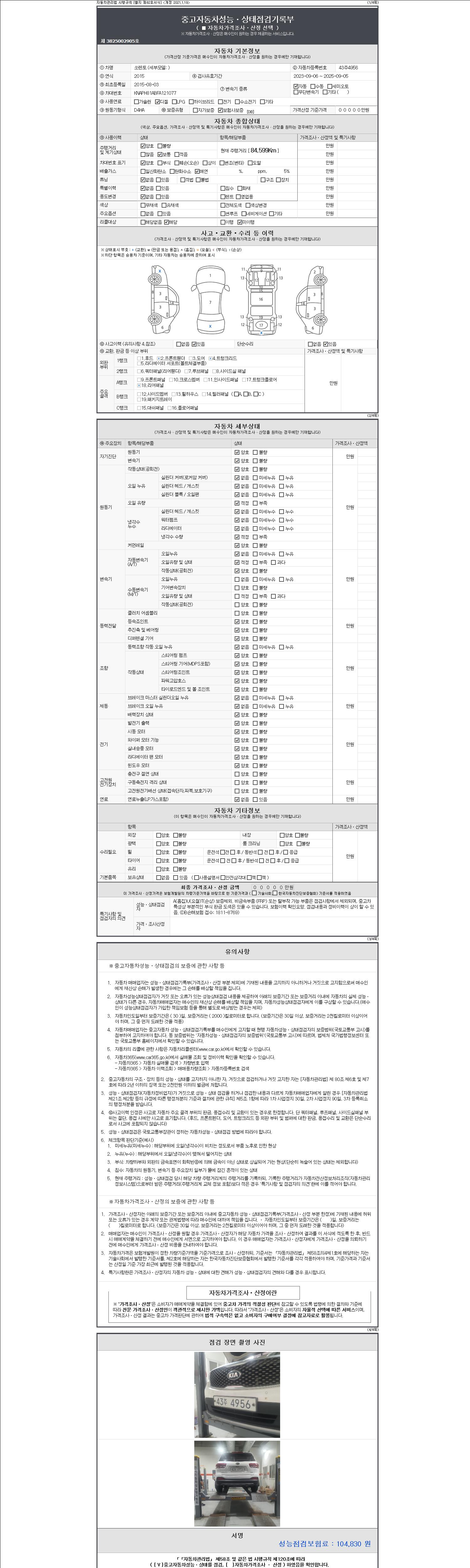 2. 차량 등록증이나 성능점검지 등을 상담자에게 요청및 확인하시고 사전에 미리 점검 하시기를 권유드립니다.