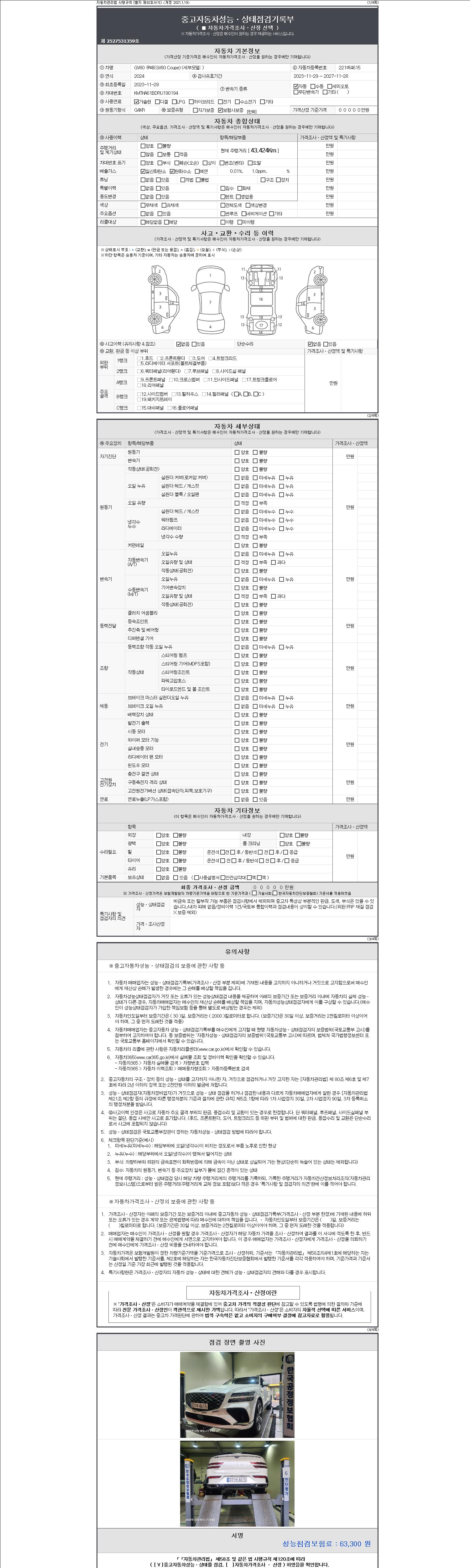 2. 차량 등록증이나 성능점검지 등을 상담자에게 요청및 확인하시고 사전에 미리 점검 하시기를 권유드립니다.