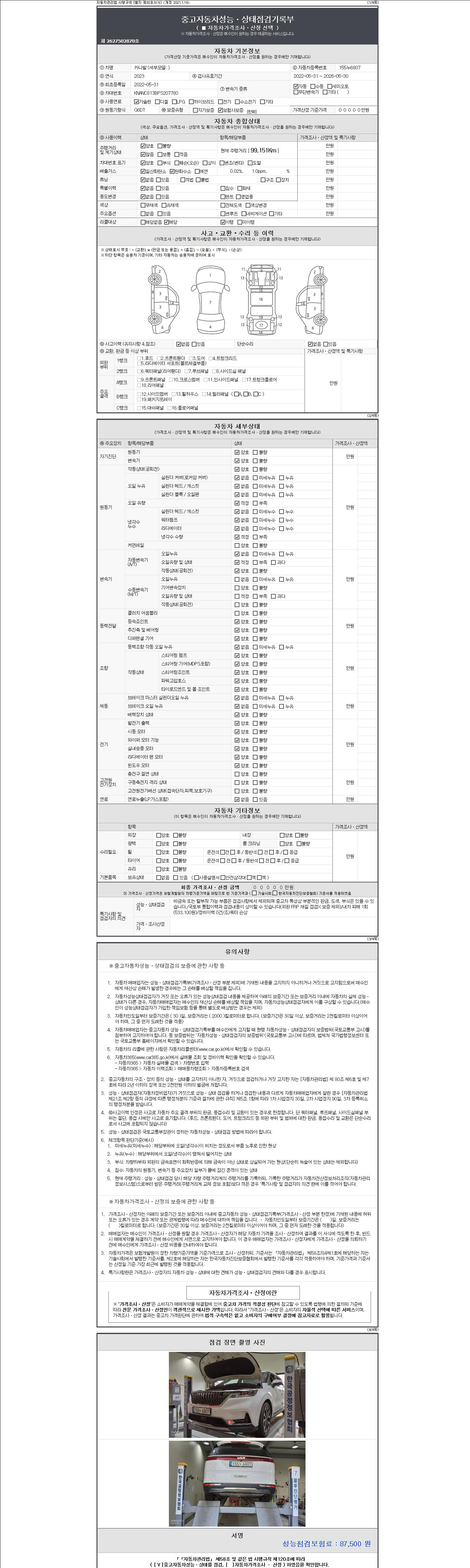 2. 차량 등록증이나 성능점검지 등을 상담자에게 요청및 확인하시고 사전에 미리 점검 하시기를 권유드립니다.