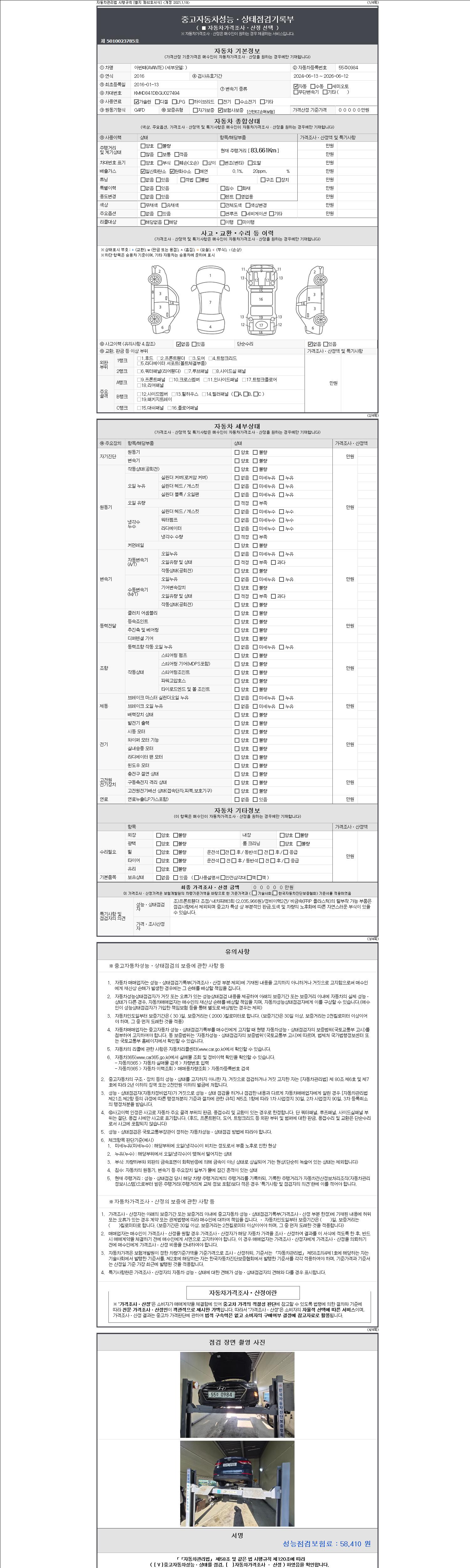 2. 차량 등록증이나 성능점검지 등을 상담자에게 요청및 확인하시고 사전에 미리 점검 하시기를 권유드립니다.