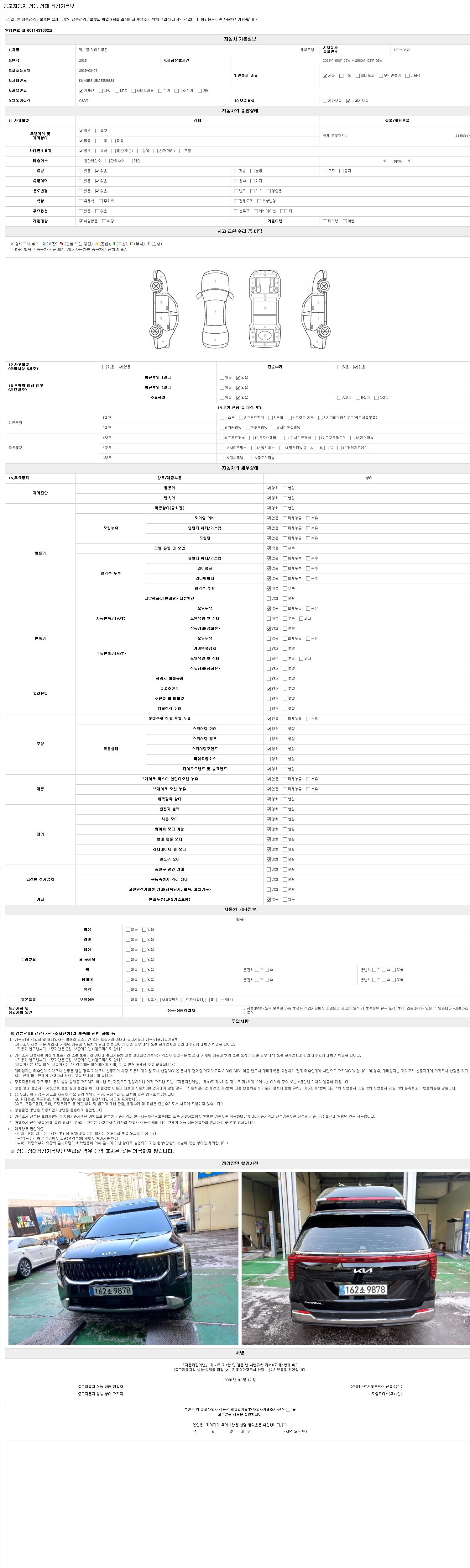 2. 차량 등록증이나 성능점검지 등을 상담자에게 요청및 확인하시고 사전에 미리 점검 하시기를 권유드립니다.