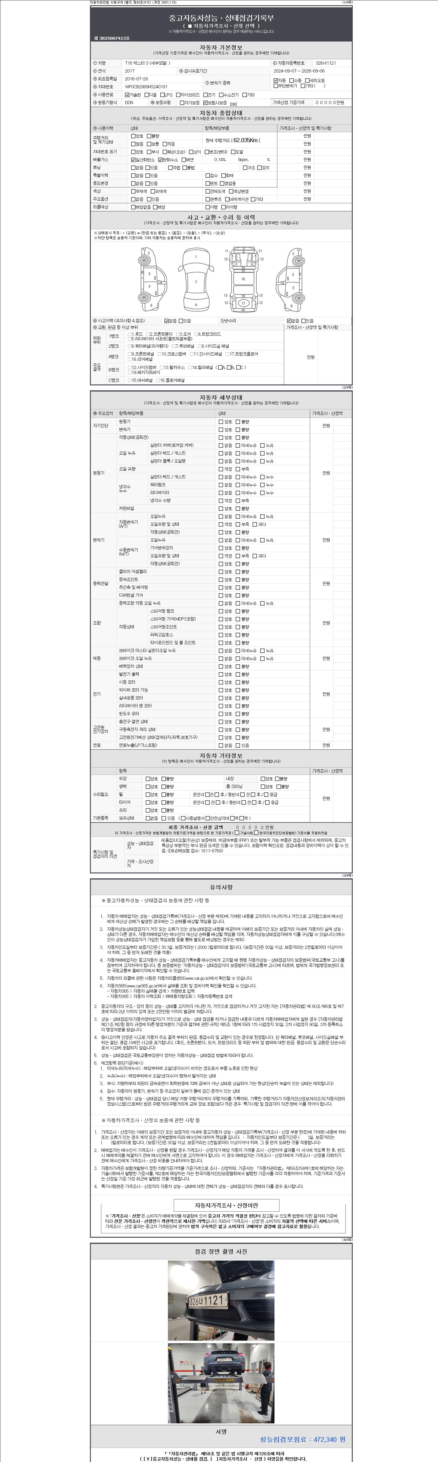 2. 차량 등록증이나 성능점검지 등을 상담자에게 요청및 확인하시고 사전에 미리 점검 하시기를 권유드립니다.