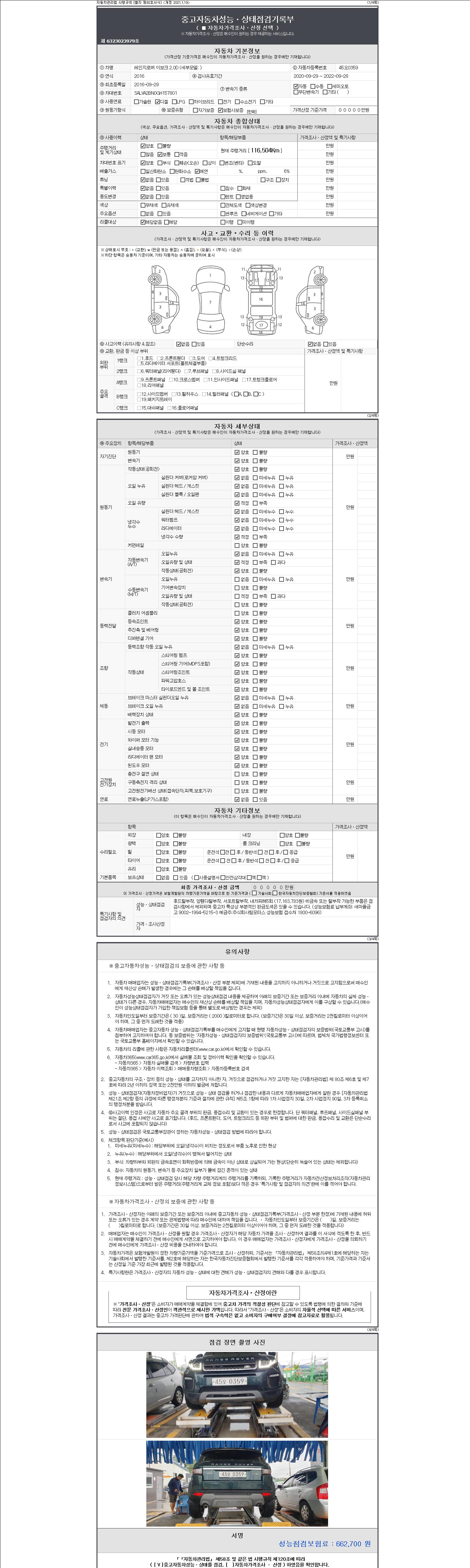 2. 차량 등록증이나 성능점검지 등을 상담자에게 요청및 확인하시고 사전에 미리 점검 하시기를 권유드립니다.