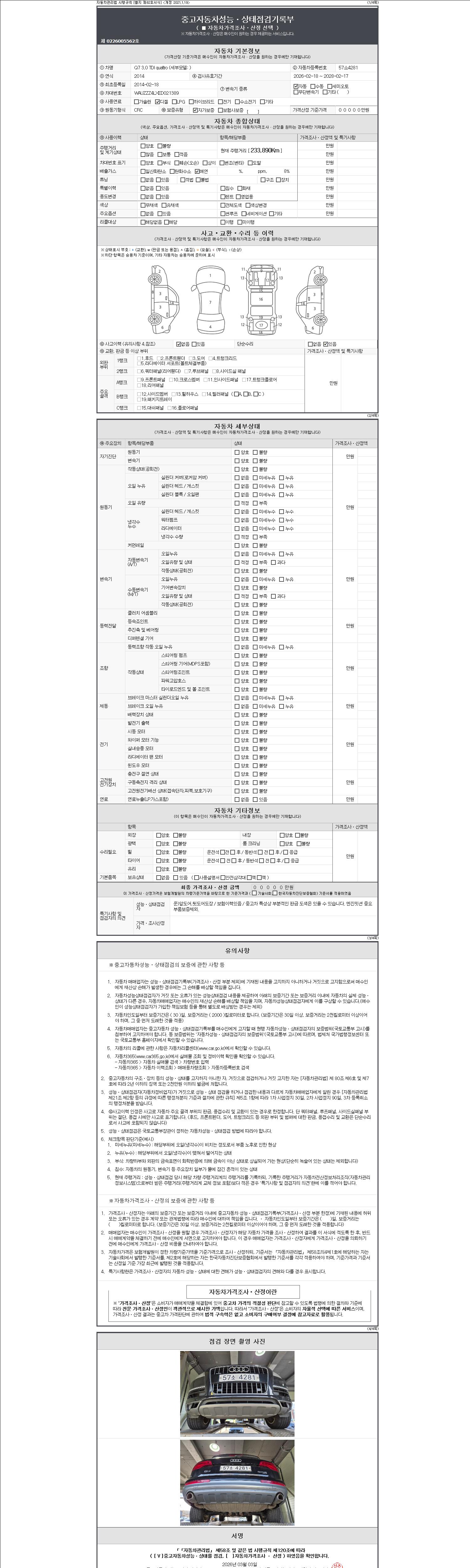 2. 차량 등록증이나 성능점검지 등을 상담자에게 요청및 확인하시고 사전에 미리 점검 하시기를 권유드립니다.