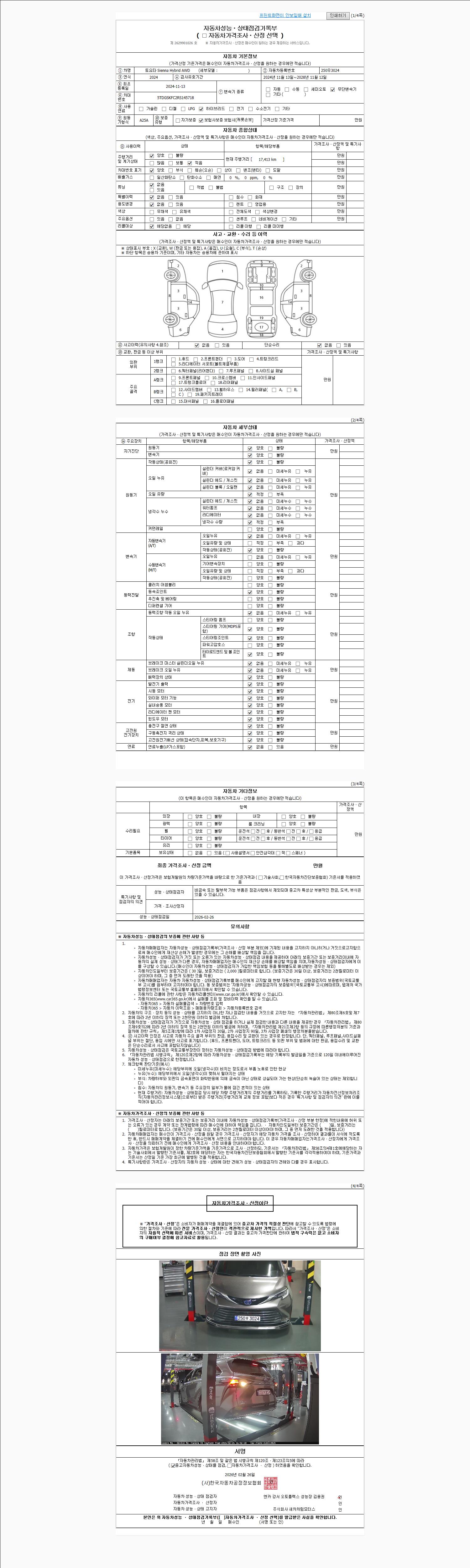 | 사고유무 | 성능기록부 참조 | 제시번호 | 제 2026025001 호 |