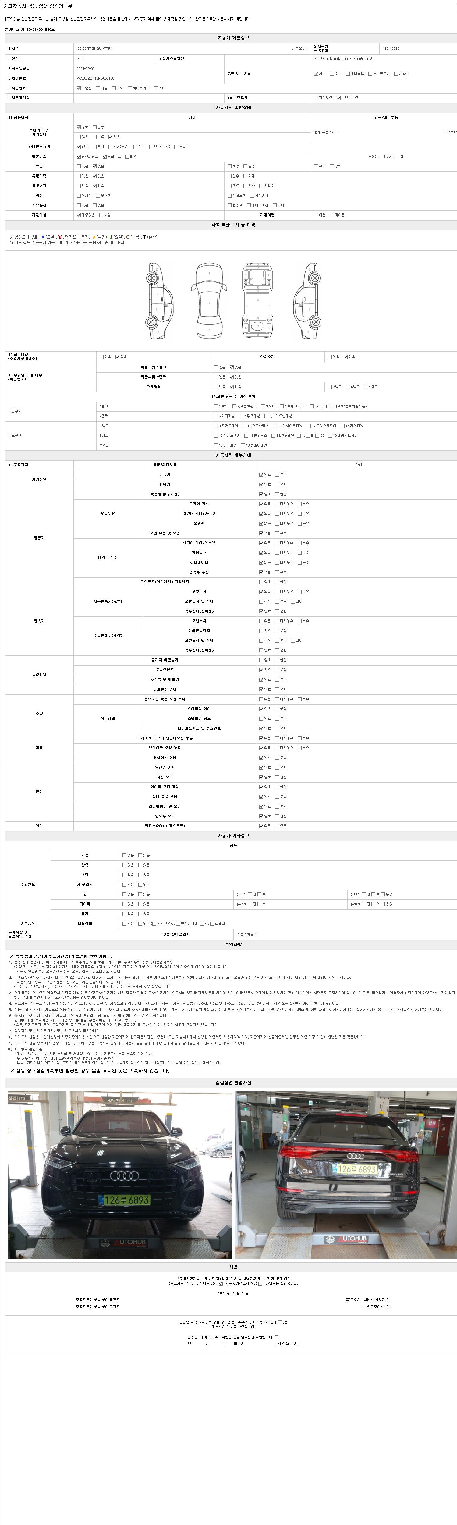 2. 차량 등록증이나 성능점검지 등을 상담자에게 요청및 확인하시고 사전에 미리 점검 하시기를 권유드립니다.