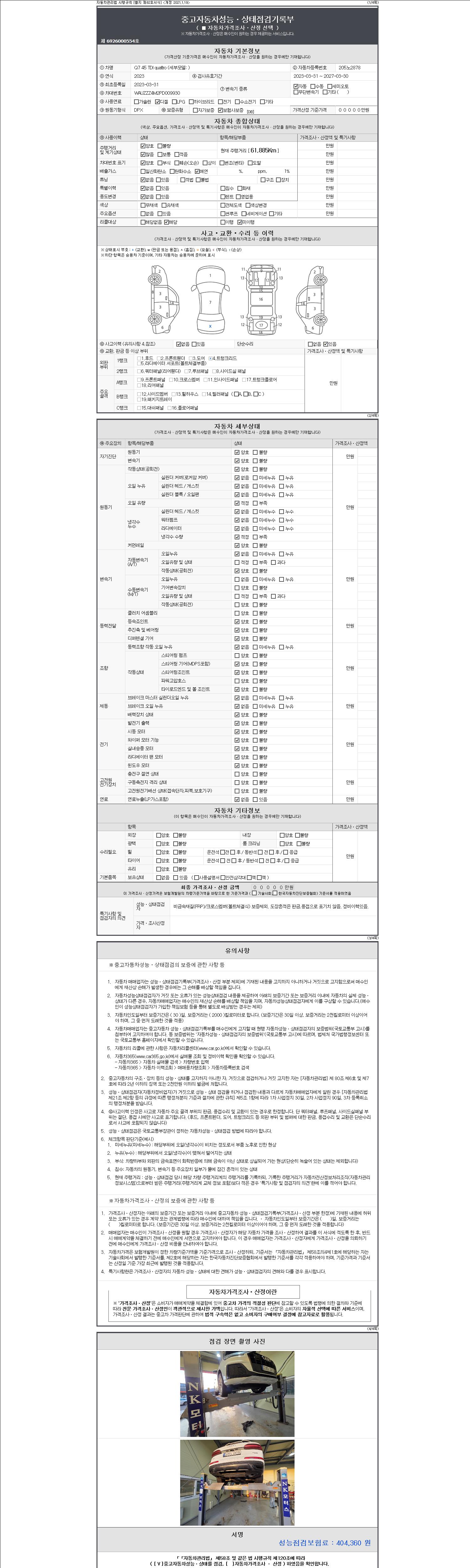 2. 차량 등록증이나 성능점검지 등을 상담자에게 요청및 확인하시고 사전에 미리 점검 하시기를 권유드립니다.