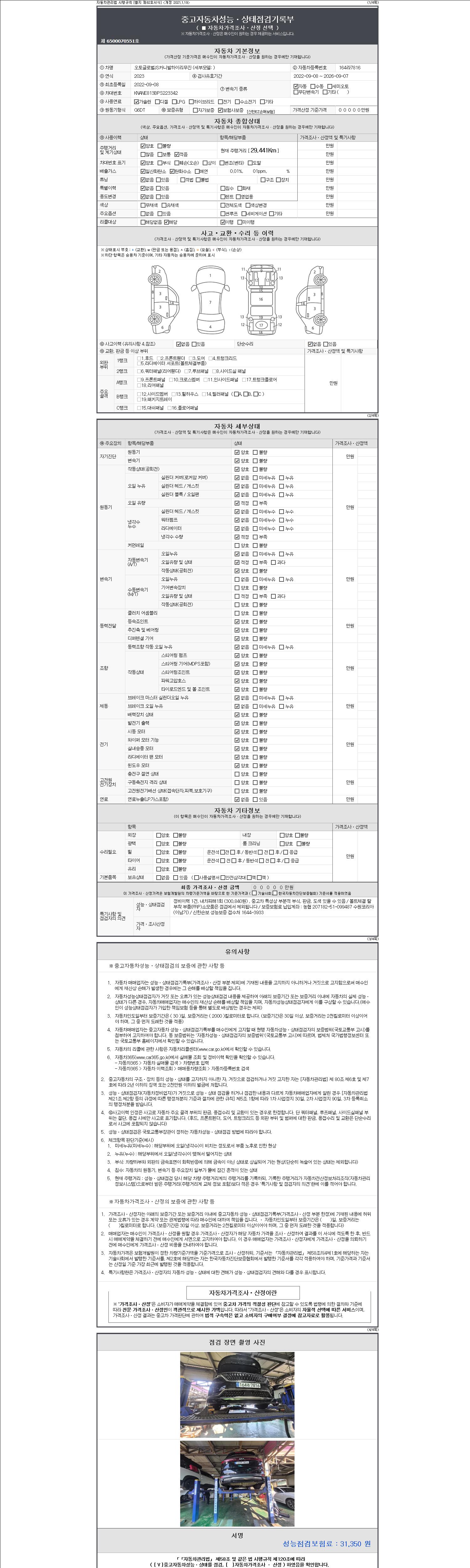 | 주행거리 | 29,441 km | 차량번호 | 164라7816 |