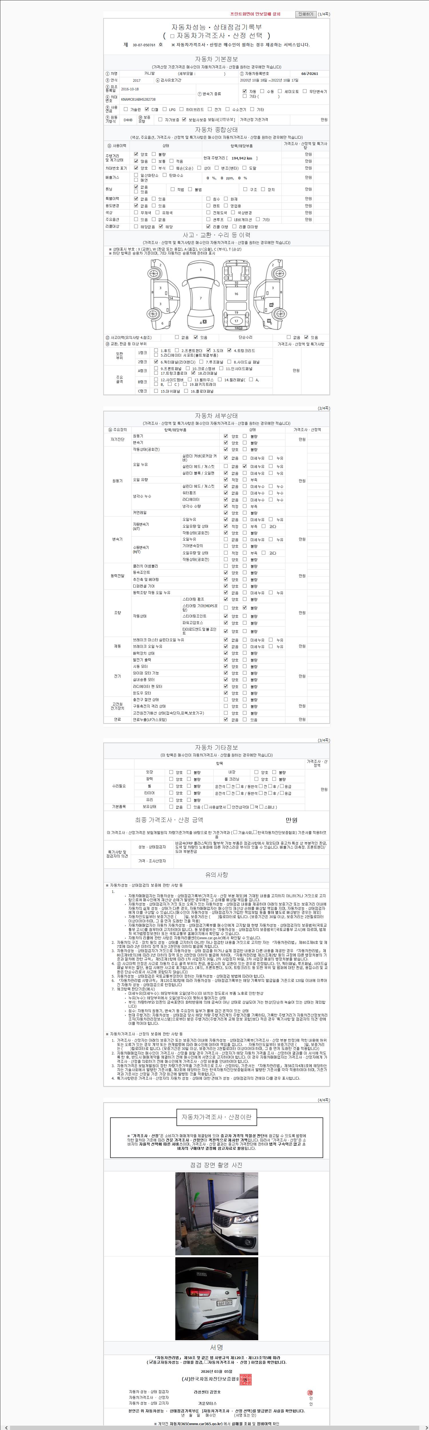 2. 차량 등록증이나 성능점검지 등을 상담자에게 요청및 확인하시고 사전에 미리 점검 하시기를 권유드립니다.
