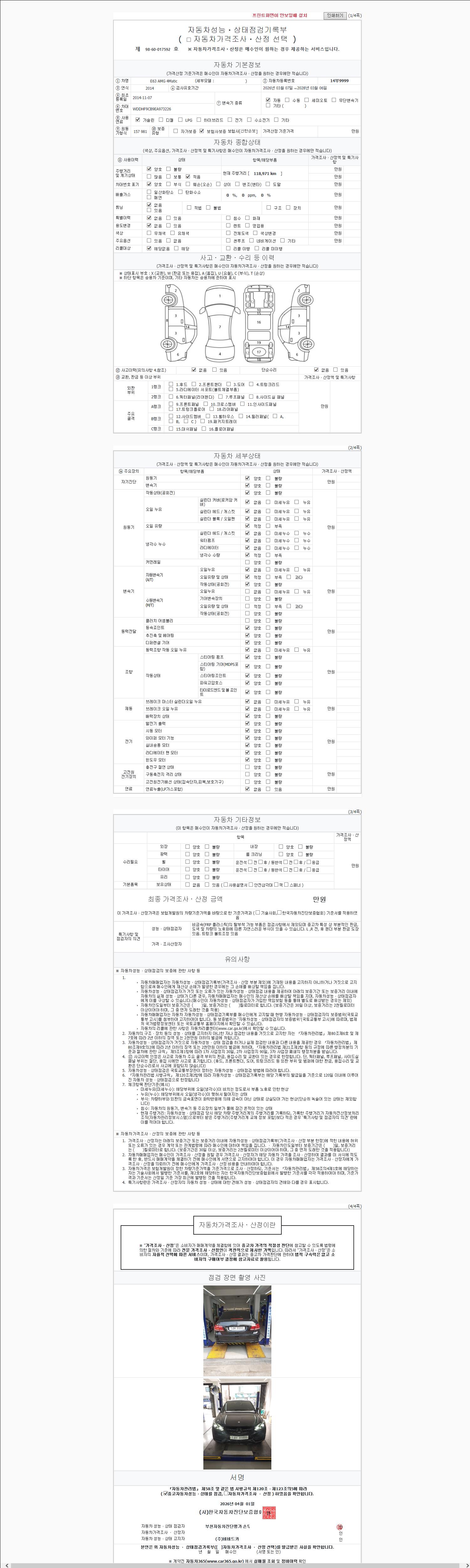 2. 차량 등록증이나 성능점검지 등을 상담자에게 요청및 확인하시고 사전에 미리 점검 하시기를 권유드립니다.