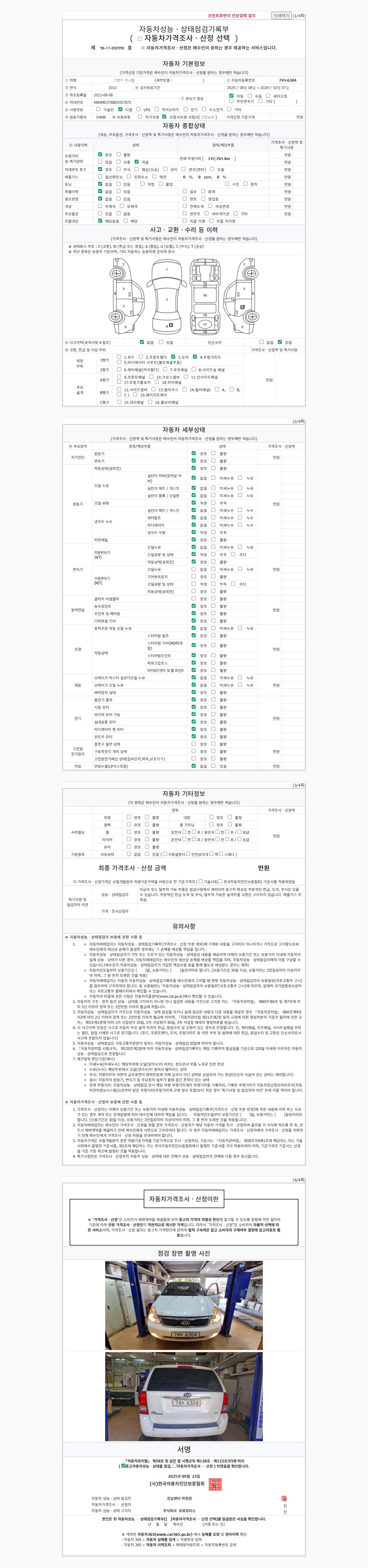 2. 차량 등록증이나 성능점검지 등을 상담자에게 요청및 확인하시고 사전에 미리 점검 하시기를 권유드립니다.