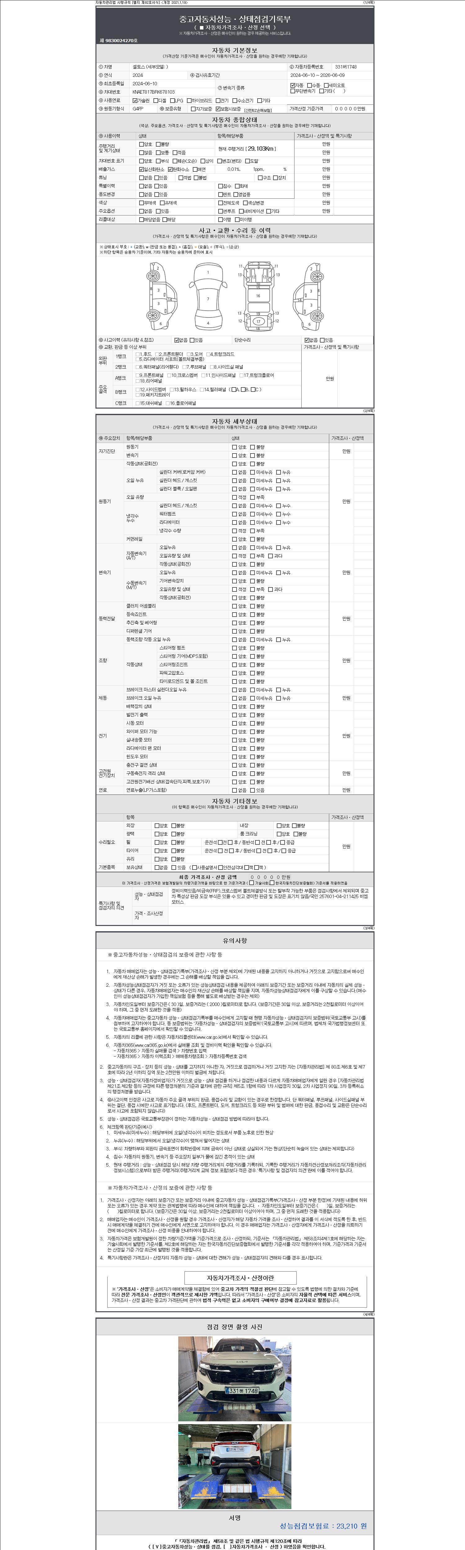 | 주행거리 | 29,103 km | 차량번호 | 331버1748 |