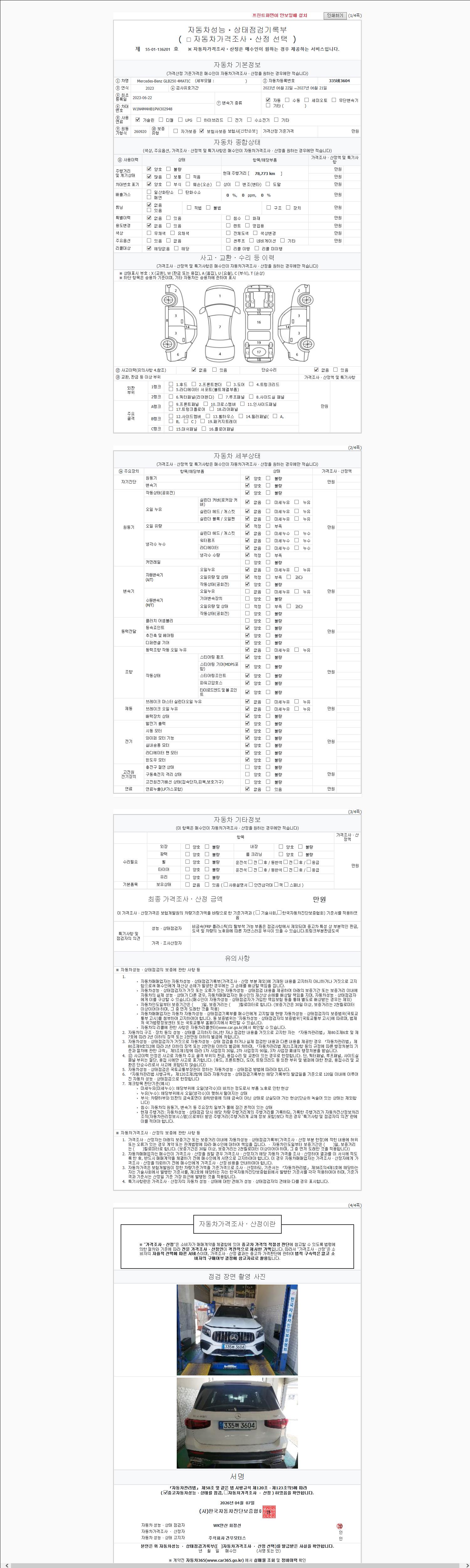 | 주행거리 | 78,773 km | 차량번호 | 335버3604 |