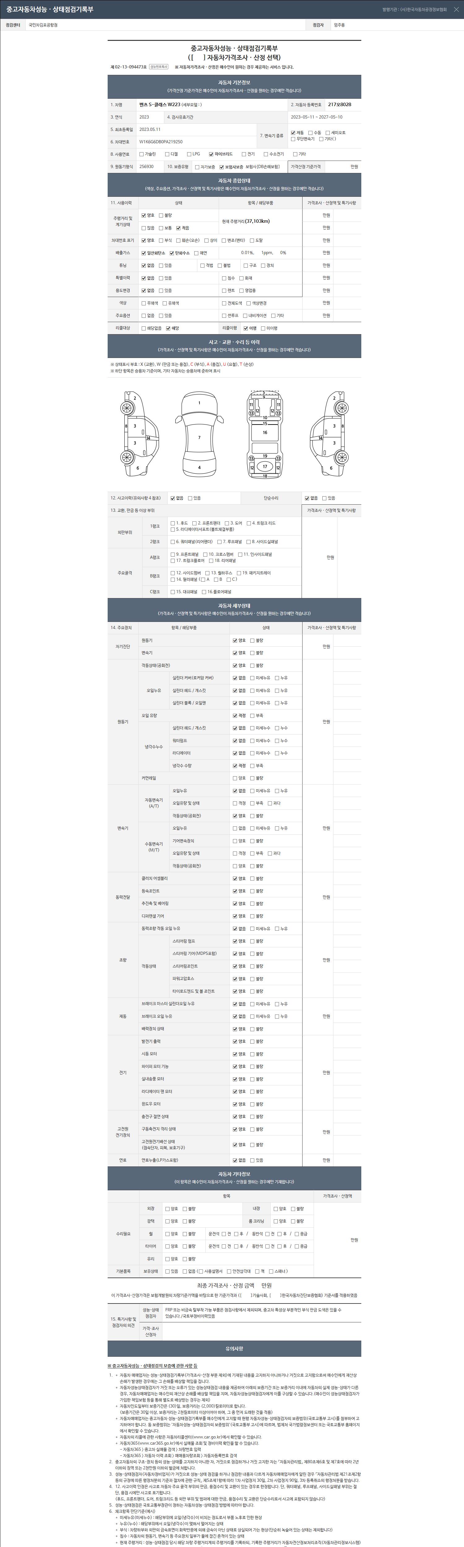 -중고자동차 매매업자를 통해 차량을 구입하실 경우 반드시 "중고자동차 성능, 상태점검 기록부"를 교뷰 받으셔야 하며, 매매업자는 반드시 의무 교부 하여야 압니다.