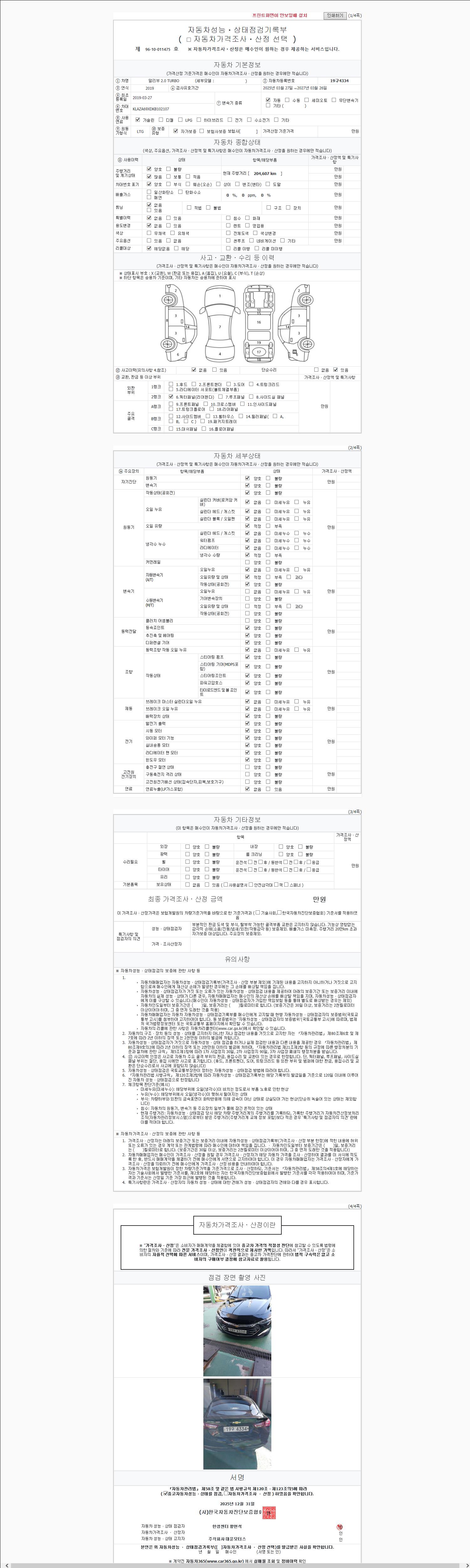 | 주행거리 | 204,602 km | 차량번호 | 19구4334 |