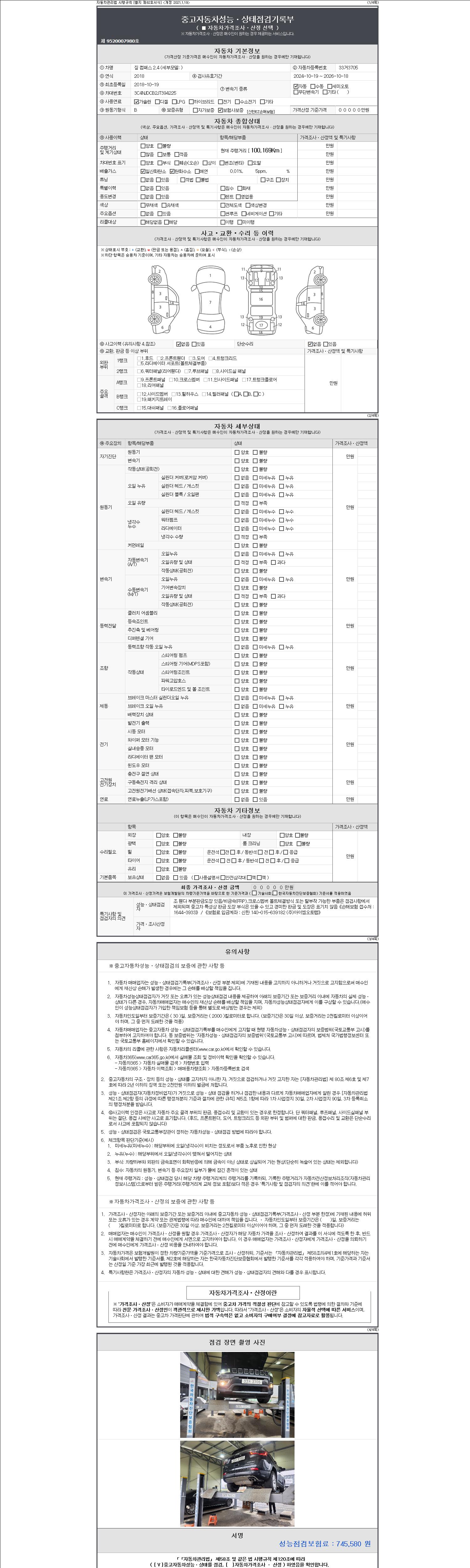 2. 차량 등록증이나 성능점검지 등을 상담자에게 요청및 확인하시고 사전에 미리 점검 하시기를 권유드립니다.