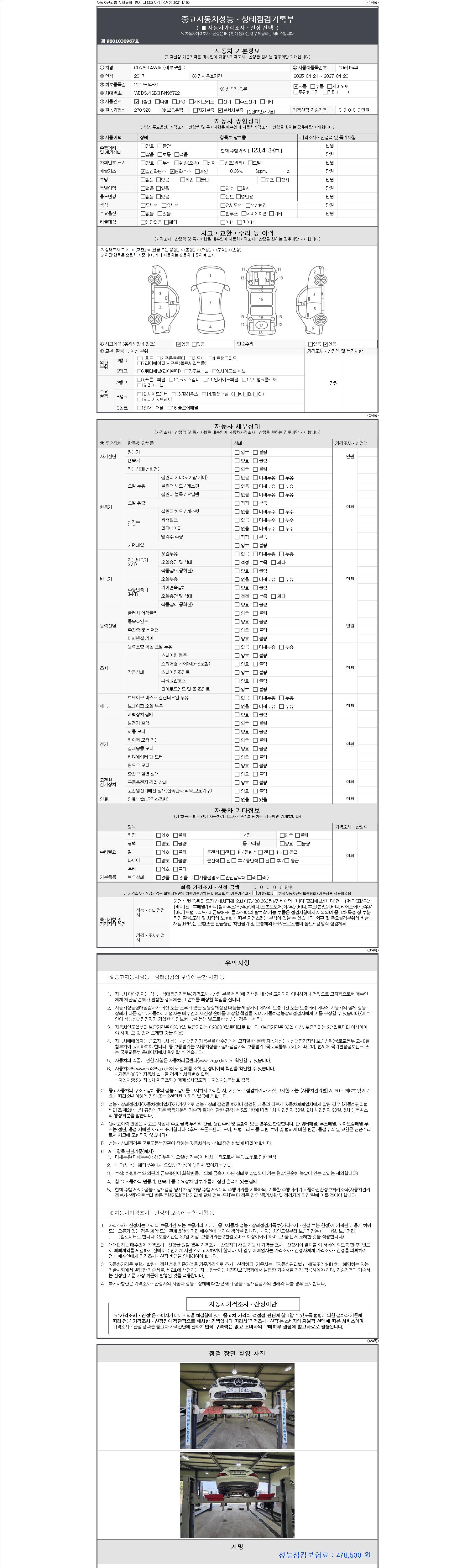 -중고자동차 매매업자를 통해 차량을 구입하실 경우 반드시 "중고자동차 성능, 상태점검 기록부"를 교뷰 받으셔야 하며, 매매업자는 반드시 의무 교부 하여야 압니다.