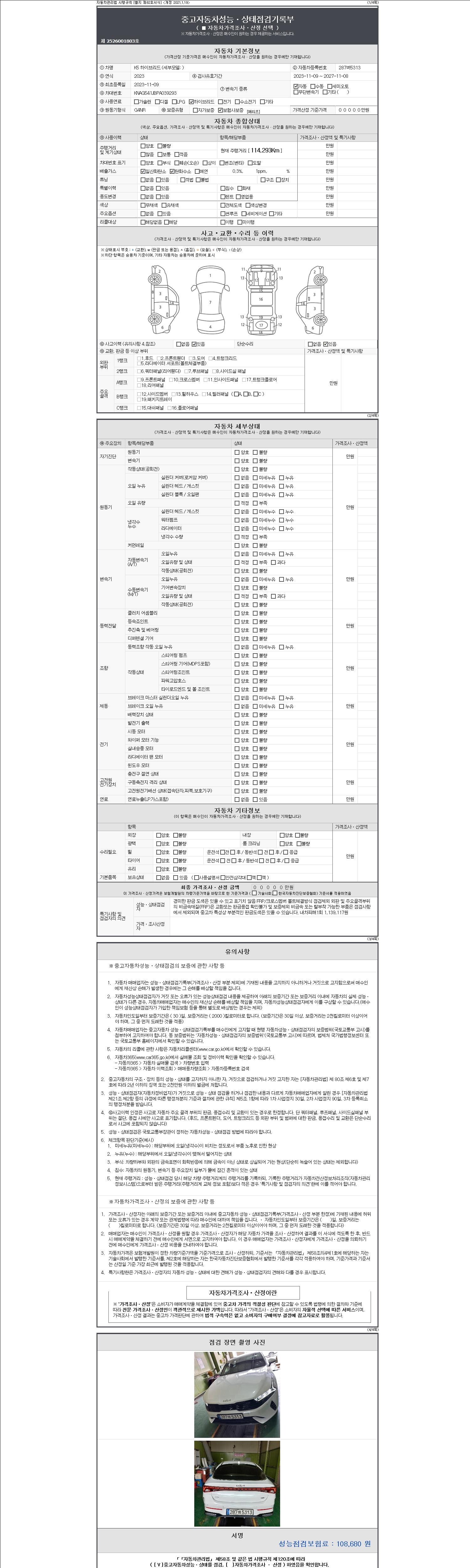 오토|휘발유 하이브리드|2023년 11월|114,293 km 287버5313| cc|흰색|무사고 |