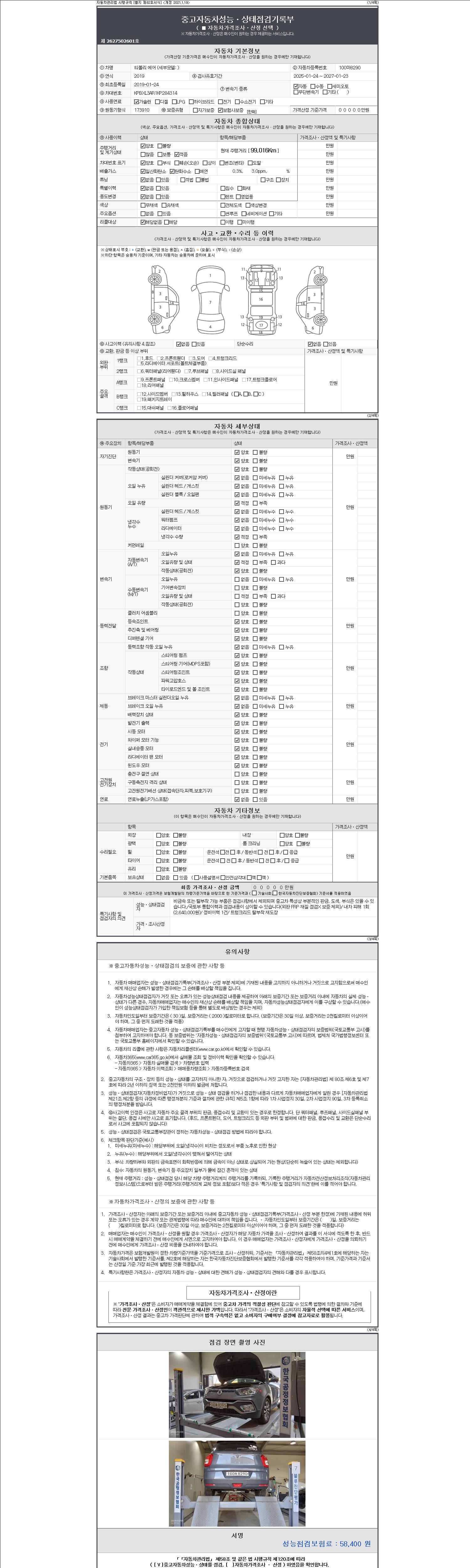 2. 차량 등록증이나 성능점검지 등을 상담자에게 요청및 확인하시고 사전에 미리 점검 하시기를 권유드립니다.
