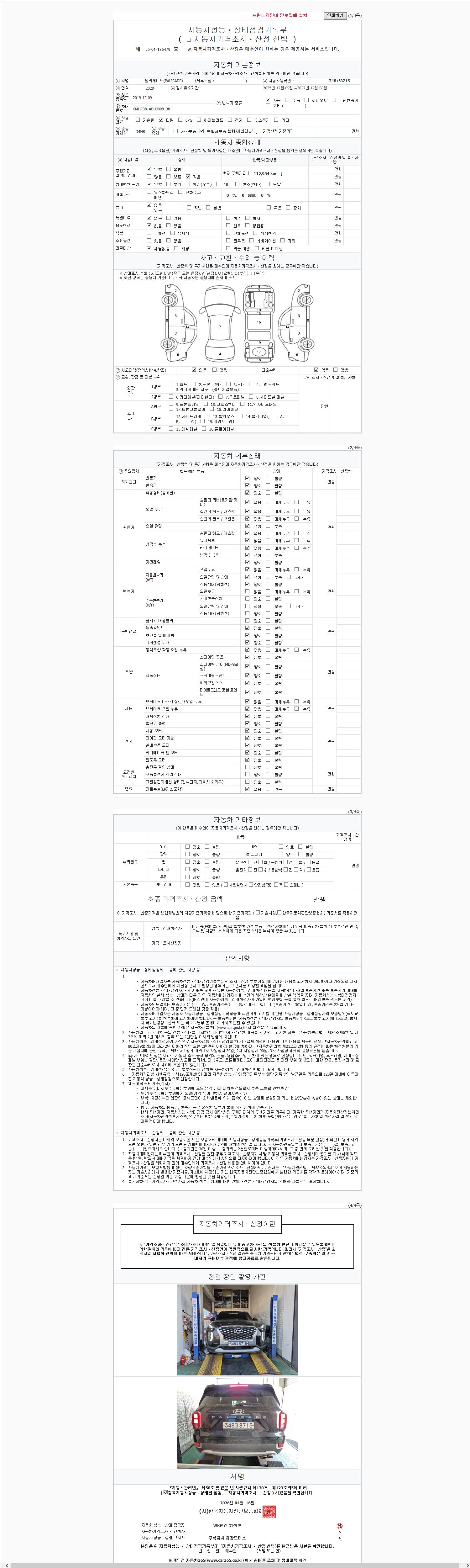 2. 차량 등록증이나 성능점검지 등을 상담자에게 요청및 확인하시고 사전에 미리 점검 하시기를 권유드립니다.