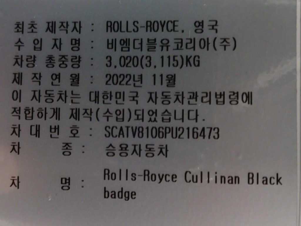 롤스로이스 컬리넌 컬리넌 (18년~) 6.7 V12 블랙 배지