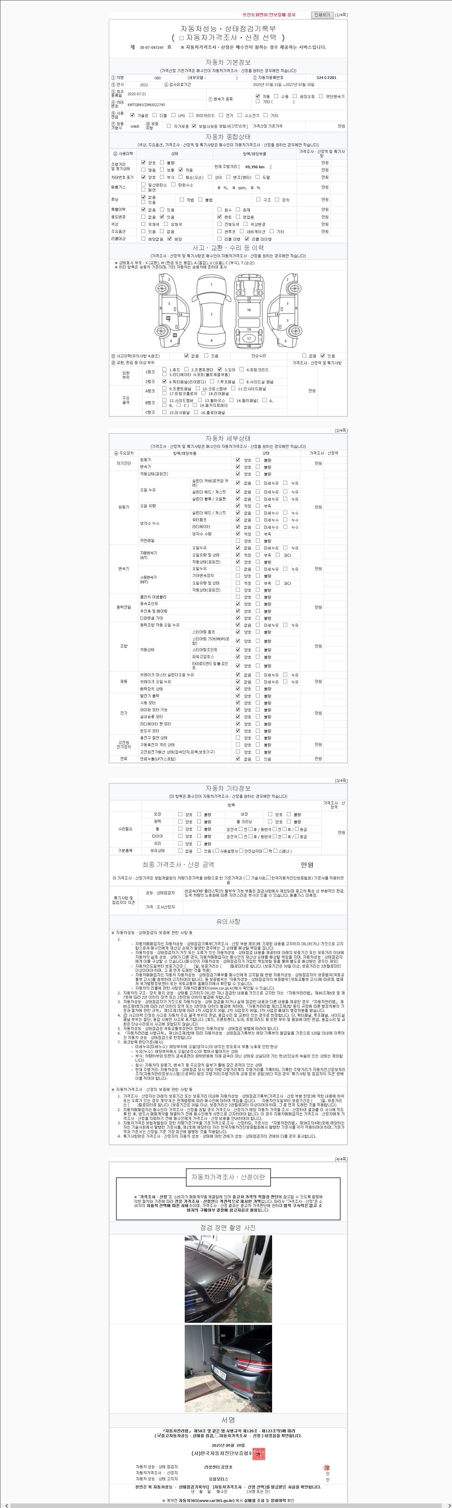 - 2. 차량 등록증이나 성능점검지 등을 상담자에게 요청및 확인하시고 사전에 미리 점검 하시기를 권유드립니다.