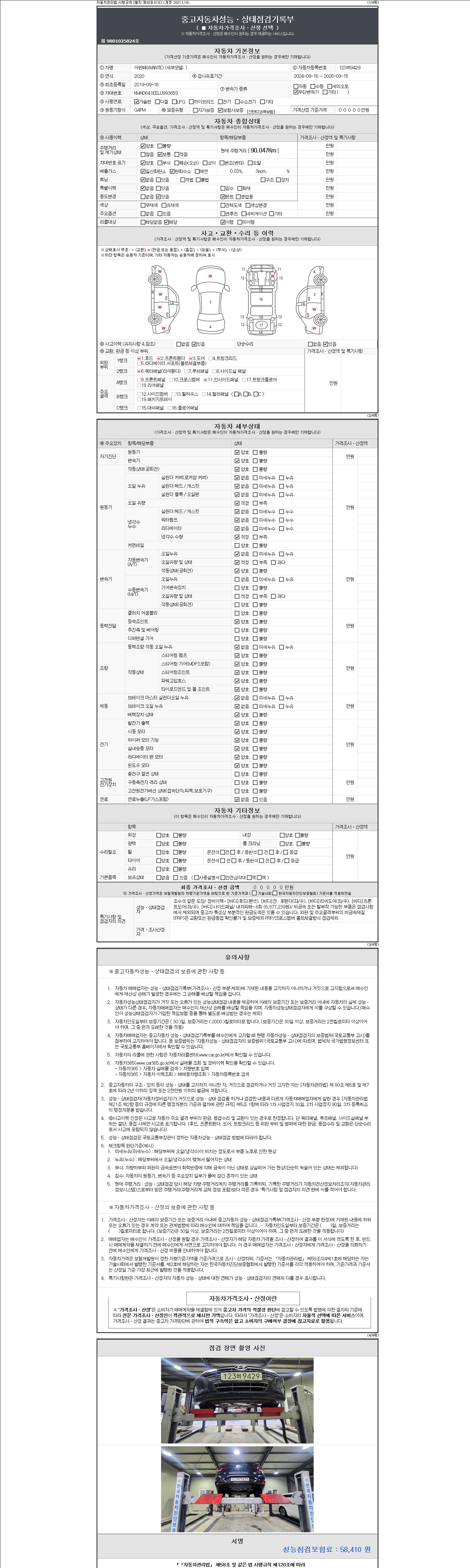 - 2. 차량 등록증이나 성능점검지 등을 상담자에게 요청및 확인하시고 사전에 미리 점검 하시기를 권유드립니다.