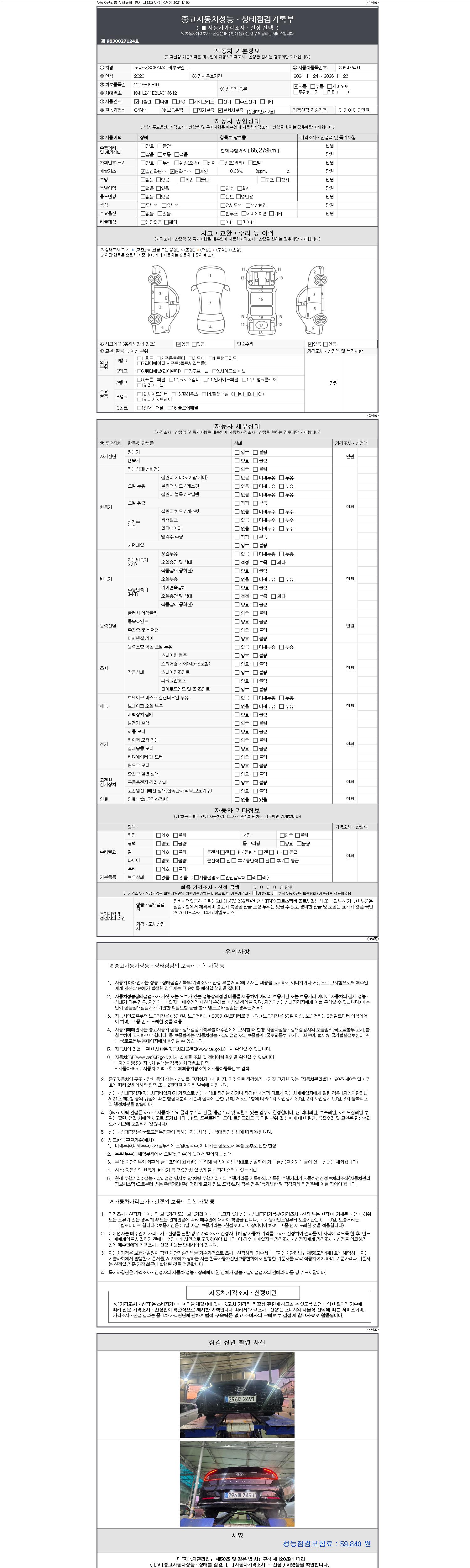| 주행거리 | 65,279 km | 차량번호 | 296마2491 | 사고유무 | 성능기록부 참조 | 제시번호 | 제 2147483647 호 |