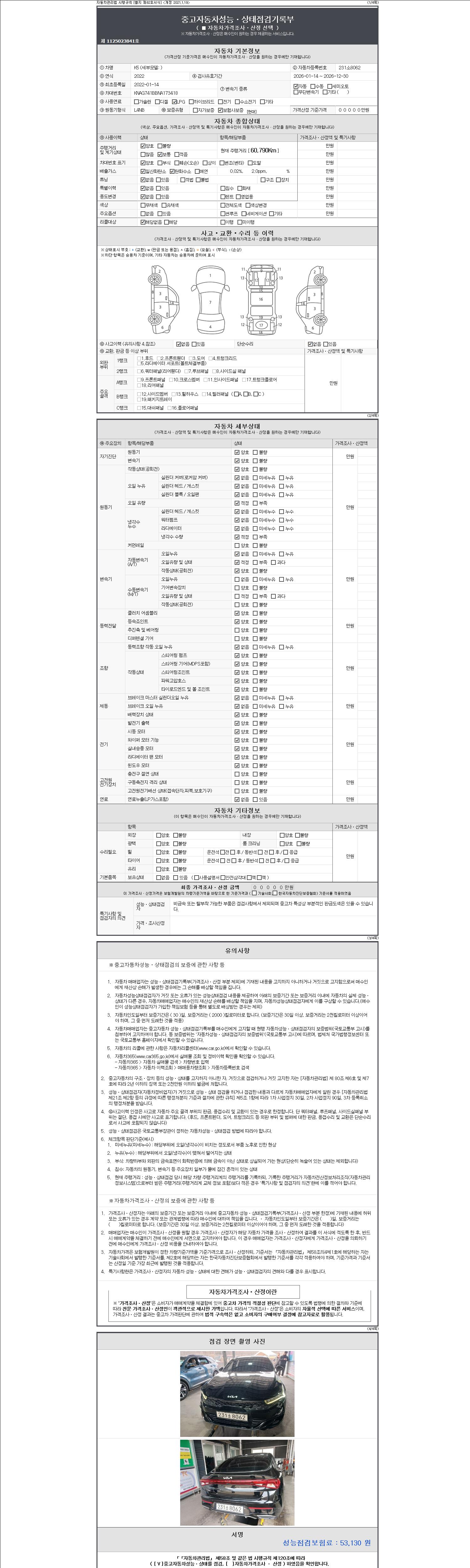 - 사고유무 : 성능기록부 참조