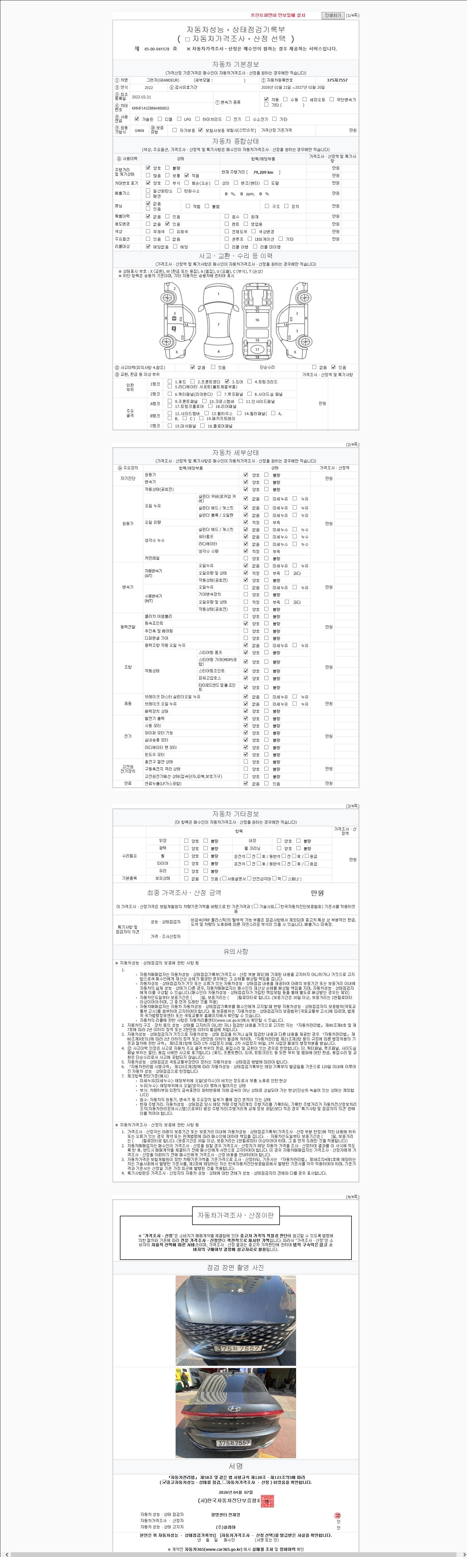- 2. 차량 등록증이나 성능점검지 등을 상담자에게 요청및 확인하시고 사전에 미리 점검 하시기를 권유드립니다.