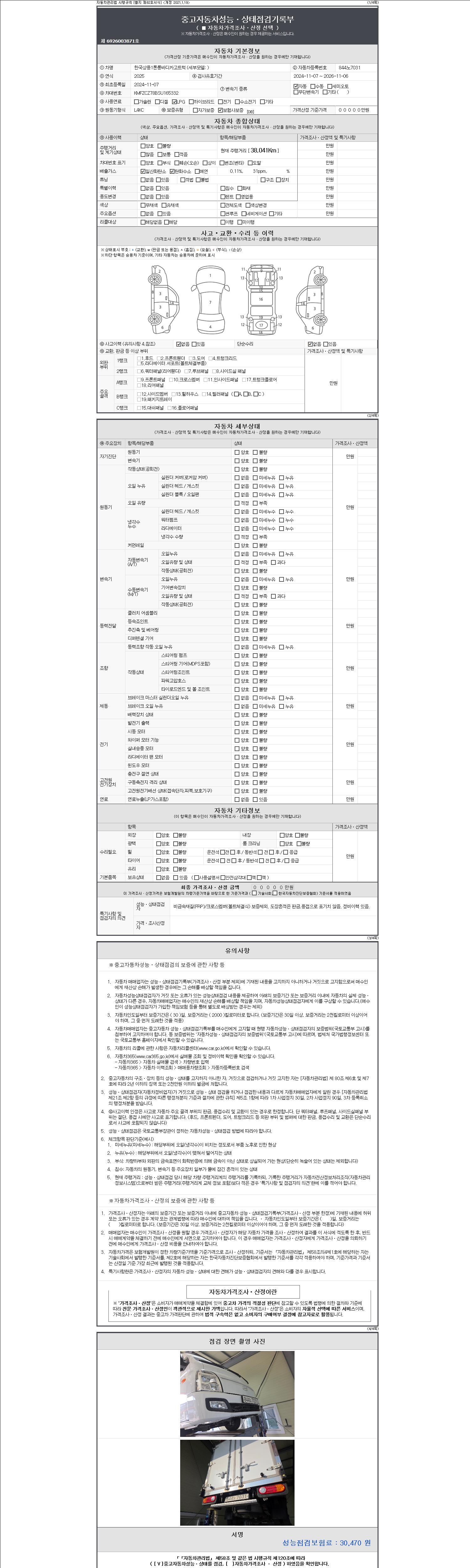| 주행거리 | 38,041 km | 차량번호 | 844노7031 | 사고유무 | 성능기록부 참조 | 제시번호 | 제 2147483647 호 |